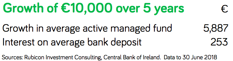 Perhaps it’s fairer to compare over a longer period. The table below compares the performance of cash and investment funds over the last five years.